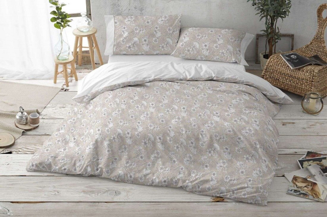 Juego funda nordica algodón 100% diseño floral en beige 637