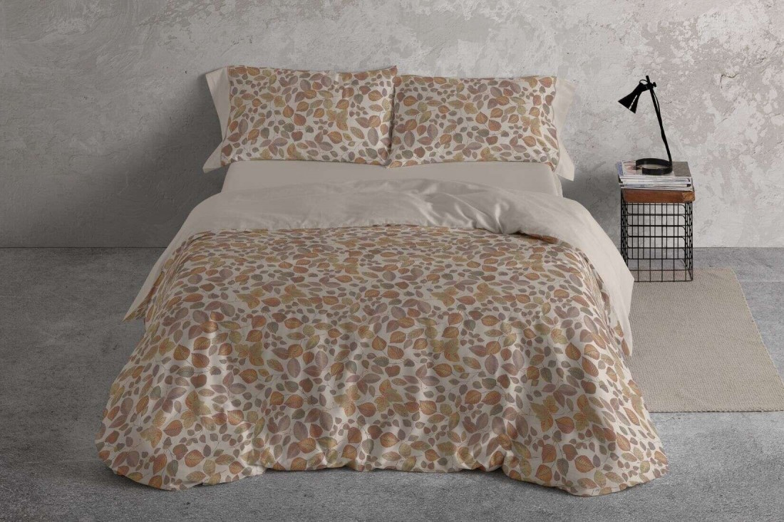 Tonos cálidos como teja, camel, beige, canela, piedra y salvia visten este juego de funda nórdica de Burrito Blanco. Su estampado de hojas, idéntico en la funda y la almohada, como ilustraciones de un herbario, evoca la calidez del otoño y la serenidad natural, aportando sofisticación al dormitorio. Reverso de la funda, bajera y aplicaciones en beige claro. Este juego de funda nórdica de calidad, ideal para ropa de cama intemporal, realza el estilo del dormitorio, creando un ambiente de distinción.
