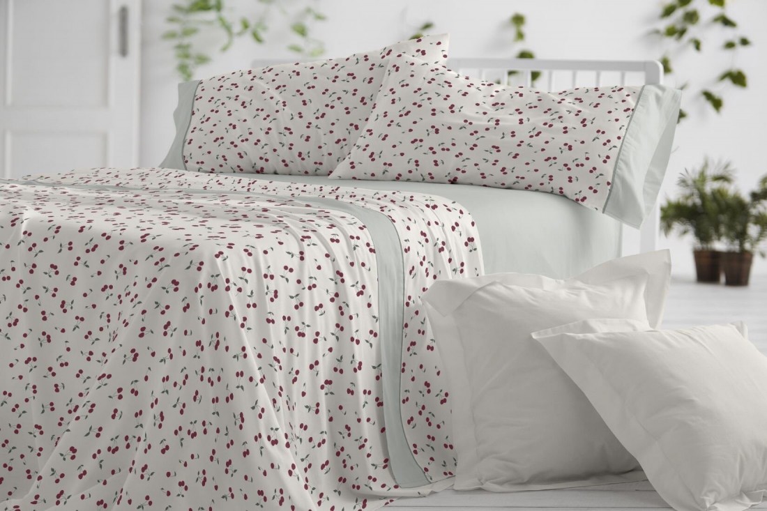 Juego de sábanas color cereza diseño frutal 546