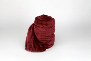 Plaid confeccionado con tejido NACARINA, más cálido y extremadamente suave y ligero, tintado en color vino y confeccionado con pespunte.