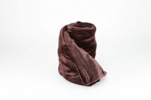 Plaid en color visón intenso confeccionado con tejido Nacarina, más suave, más ligero y muy cálido. Confeccionado con pespunte.
