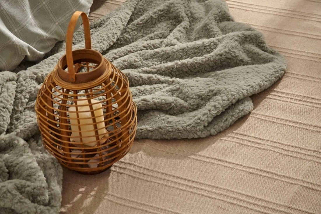 Mantita confortable y suavecita para decorar sobre el sofá o para disfrutar del confort cálido del hogar. Una manta polivalente, fabricada en un tejido con pelito (imita una piel de cordero) en tono laurel que aporta serenidad al ambiente. Tanto para adornar o para dejarse abrazar por ella, esta mantita dará un toque especial a cualquier ambiente decorativo.