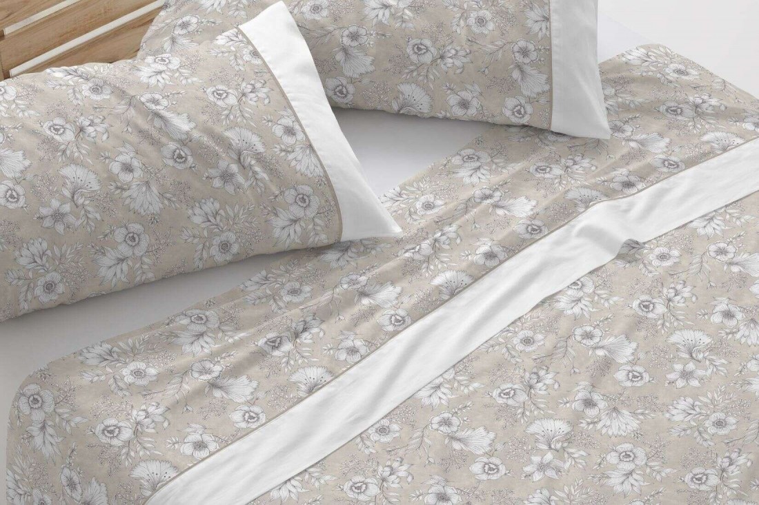 Juego de sábanas algodón 100% color beige diseño floral 637