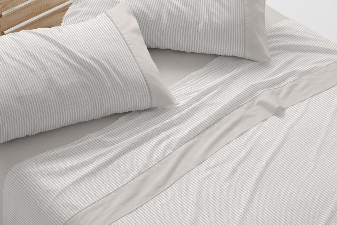 Juego de sábanas algodón 100% color greige diseño rayas 640