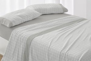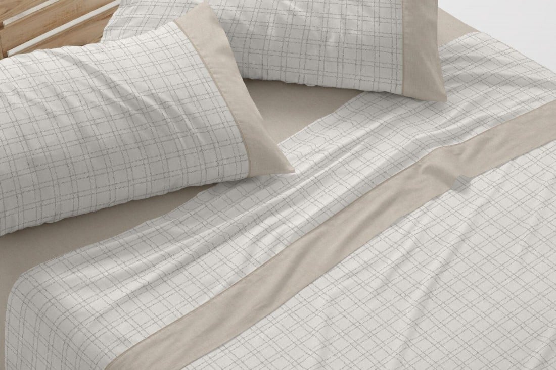 Juego de sábanas 100% algodón color lino diseño cuadros 635